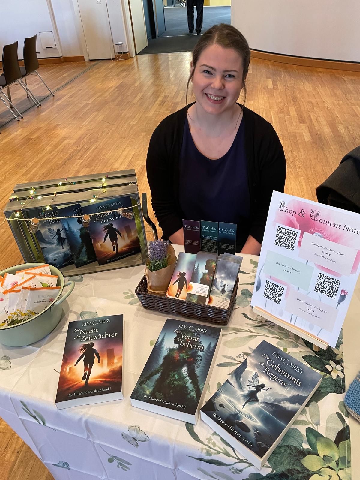 Elya C. Moss wurde in einer kleinen Stadt am Main geboren und wuchs in einem noch kleineren Dorf in der Nähe von Frankfurt am Main auf. Ihre Kindheit war geprägt vom Wasser, vom Spielen auf der Straße und auf dem Feld und von Büchern. Schon früh begann sie, ihre Geschichten und Gedichte in Notizbüchern festzuhalten. Ihre Leidenschaft fürs Schreiben und Lesen halfen ihr, die Universität zu meistern und in Sozialwissenschaften zu promovieren, aber etwas fehlte: die Kreativität und Fantasie. Und so begann sie, ihren ersten Roman „Die Nacht der Zeitwächter“ zu schreiben. Die Idee kam ihr, als sie sich auf ein Vorstellungsgespräch vorbereitete, einschlief und von einer dystopischen Zukunft träumte. Den Job hat sie trotzdem bekommen und seitdem würde sie am liebsten Tag und Nacht schreiben und die leeren Seiten mit ihren Geschichten füllen.